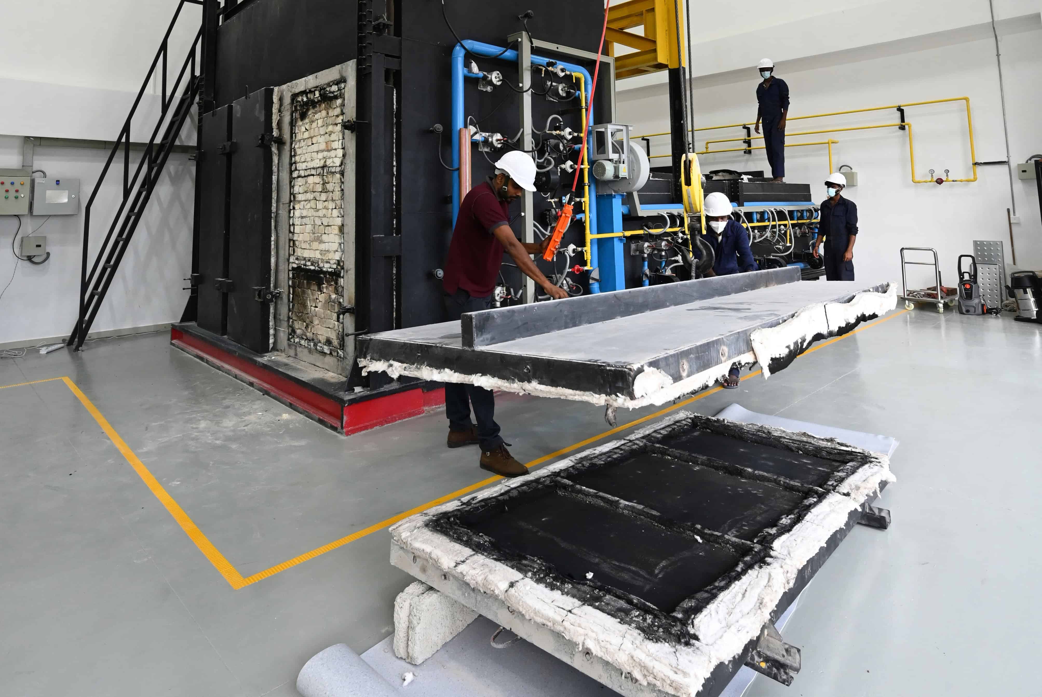 The Actual Scale Furnace at the CFSE is a robust facility designed for conducting comprehensive fire resistance tests on construction elements with the capability of both load bearing and non-load bearing fire tests. This furnace is capable of simulating actual fire conditions to assess the structural performance and safety of building components.